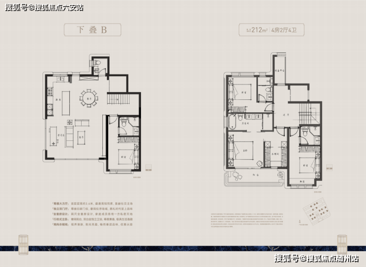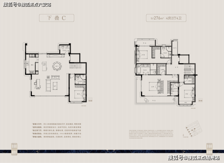 建面约210-280㎡纯4层叠墅,通过上叠北庭下叠南院,独立归家动线、约6m层高地下空间与全套房设计等,推动叠墅空间进化。精装上,嘉格纳、博世等百年品牌加持,尽显极简优雅。