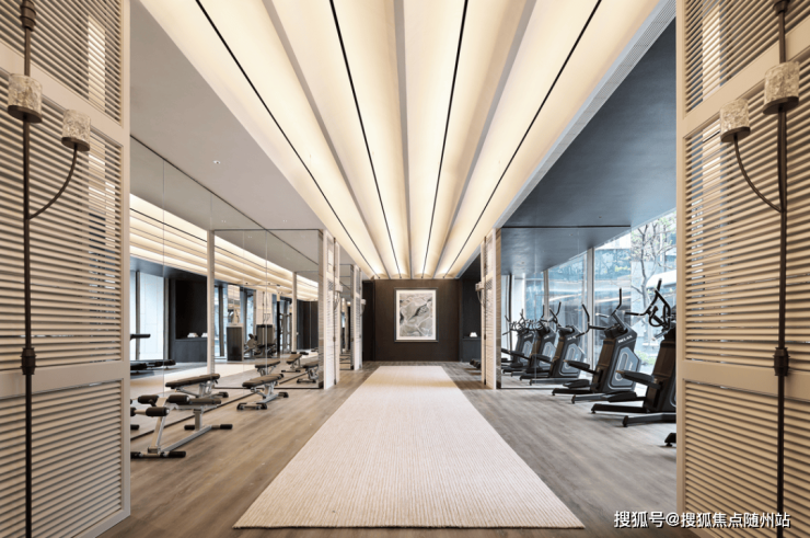 因为健身房、恒温泳池等空间基本都采用落地窗,所以实现了与下沉庭院的无界联动,真正做到了景观无界。即无论你在健身房还是在恒温泳池,都能观赏到下沉庭院里的景致。