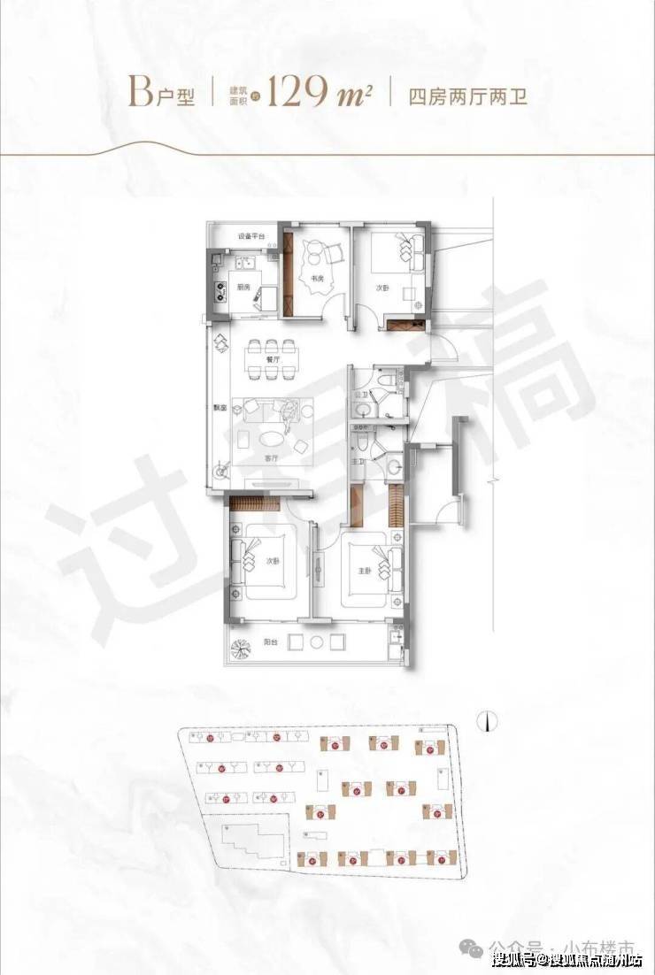 129㎡舒适四房:四开间朝南 + 12 米南向面宽,独立家政间贴心配置