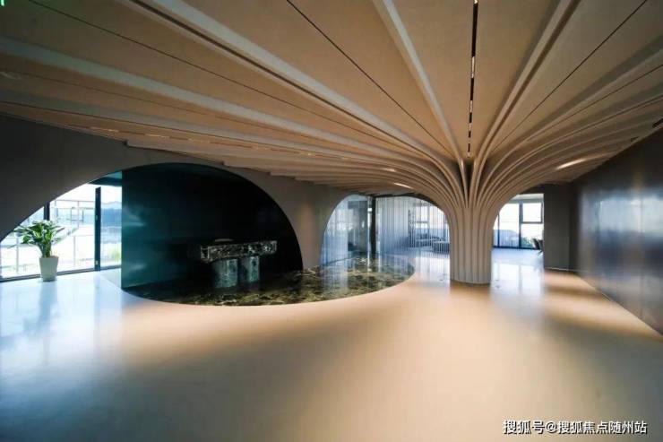 动态轮廓:灵感源于钱塘江潮涌,弧形线条弱化工业建筑的冷硬感,与德绍包豪斯的“消失的窗框”异曲同工,以视觉减法成就美学加法;