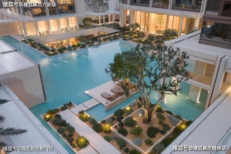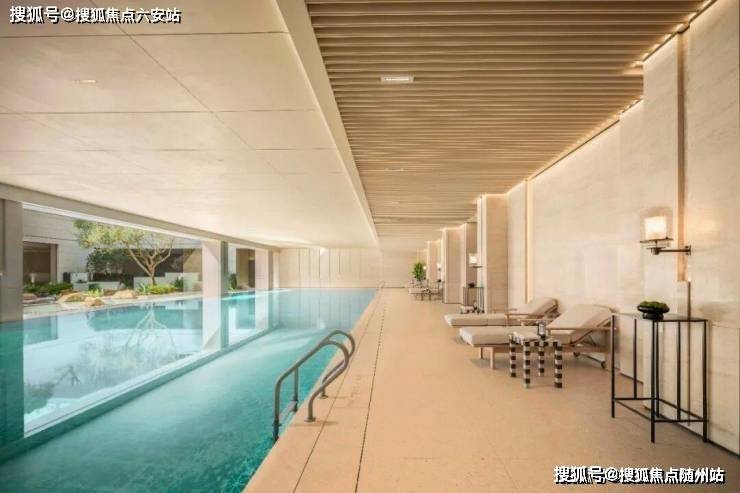 比如恒温泳池,与下沉式庭院只隔了一面大玻璃,看出去就是庭院里的水景。这样的恒温泳池已经不是豪宅的专属了,单价三四万的璟逸,也可以拥有。