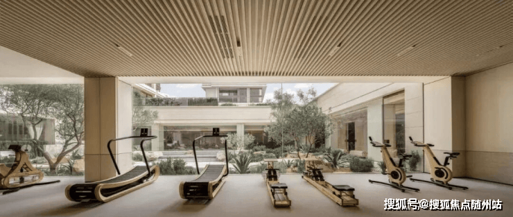 比如健身房,不止用了全进口的器材,它的颜色也是挑选过,不是冷冰冰的黑色,而是温暖明亮的原木色;