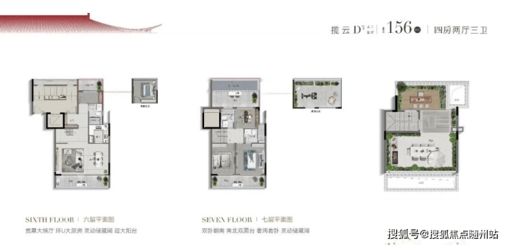 上叠(建面约156-177㎡):屋顶露台+全景窗,尽揽天际线