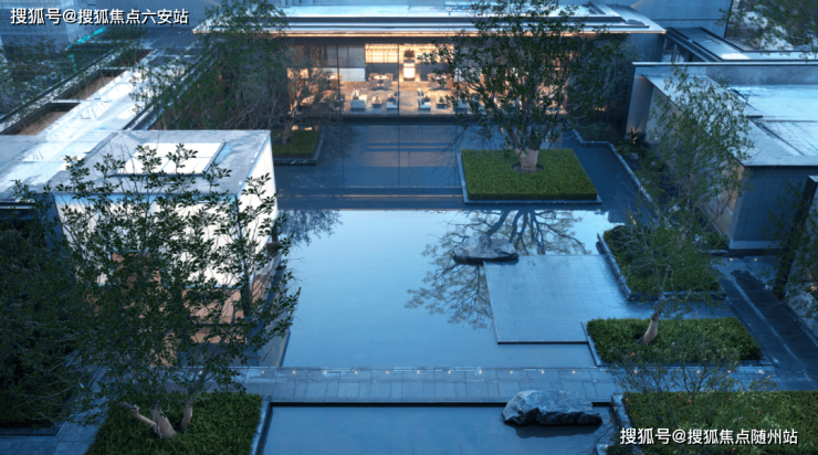 信步向前,便步入“淡烟流水画屏幽”的中庭水院。挺拔的乌桕、浑然的石景与清浅流水共同营造出静谧风雅的氛围。未来,这里将成为与家人饭后漫步、与邻里闲话家常的雅致客厅,在自然的气息中,感受时光缓慢流淌的静谧与美好。