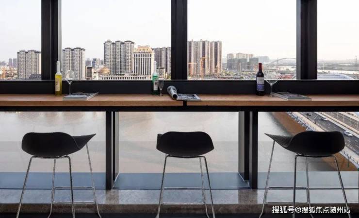 无论是在办公桌前设计方案,还是坐在阳台上的高脚椅上写稿, 窗前的大江与现代建筑相融合的曼妙景色,都会给人源源不断的灵感。