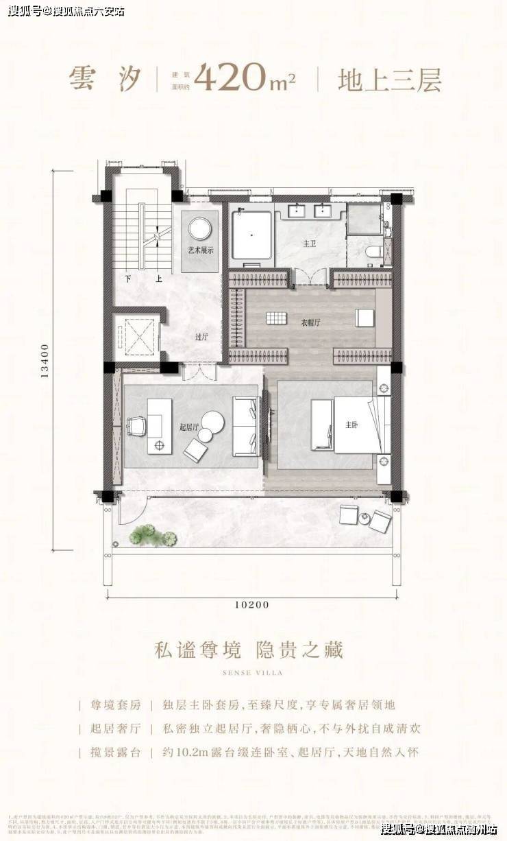 叠墅纵向空间上,功能立体分层、动静分离,上下叠皆拥有独立庭院,且下叠地面首层挑高至约3.55米,中上叠会客层亦挑高至约3.45米,全系户型皆奢享挑高约7.2米居下空间。