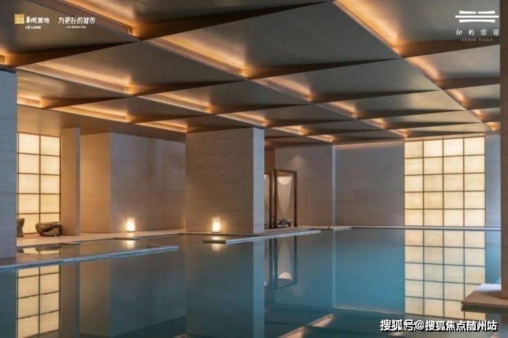 大尺度落地窗,与下沉庭院无缝连接,将窗外的山石、松影与飞瀑引入室内。每一次畅游,仿佛流动于山水长卷之中。整个泳池空间全部采用“香槟金”马赛克铺装,加上度假风情的休憩区,以及疗愈按摩系统,酒店式尊崇的舒适感扑面而来。