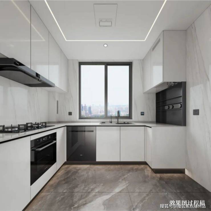 厨电配备博世燃气灶、油烟机,方太洗碗机和蒸烤一体箱,霍尼韦尔净水器、凉霸、台面不锈钢置物架、可移动插座。