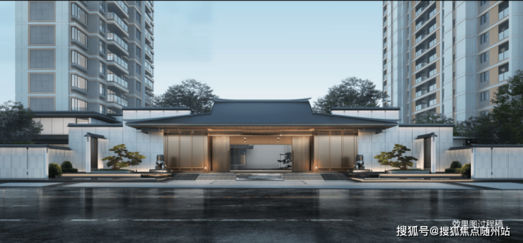约70米宽中式大门,三进中式园林,三面铝板+大面积玻璃+中式飞檐,每一处都让人惊叹