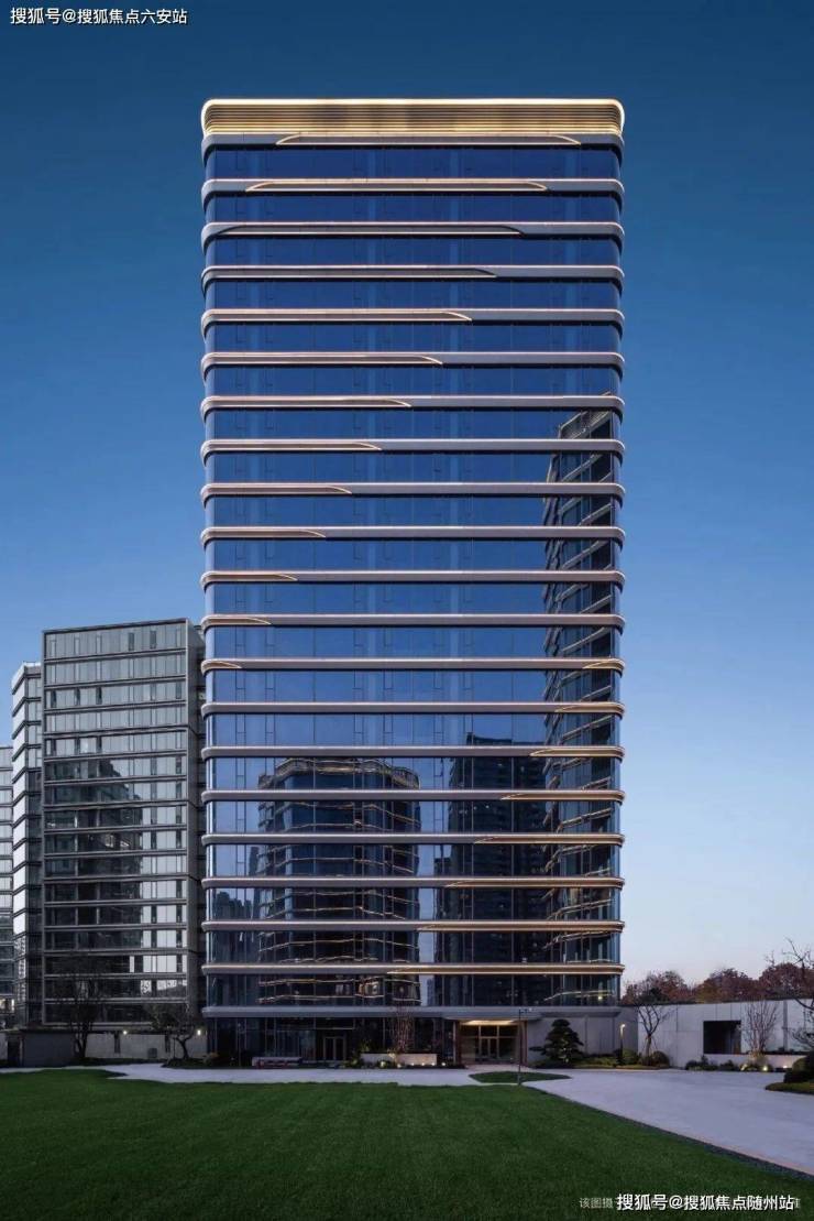 建筑形态:由4栋16-21层的围合式玻璃幕墙楼宇构成,采用独特的六边形剖面设计,两侧巧妙内凹,形成270°的圆弧玻璃幕墙,外立面融合超白玻璃与铝板线条,展现出国际化的建筑美学风范。
