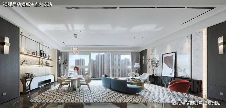 杜文彪"江河云霞":采用渐变釉面陶瓷板模拟日出色彩,从玄关的绛紫过渡到主卧的琥珀金,定制家具以"云纹"为灵感,扶手曲线如浪花翻涌。