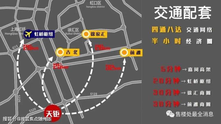 四通八达立体交通网络;嘉闵高架、虹梅南路高架、沪闵公路、申嘉湖高速、沪金高速、沪昆高速