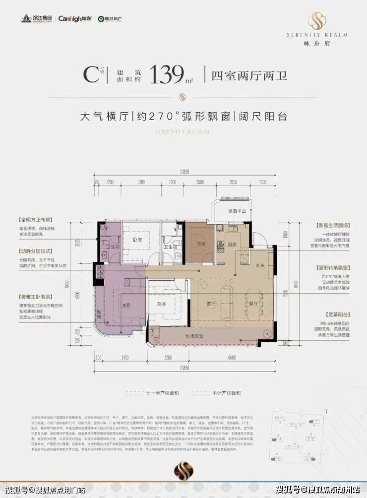 139㎡户型:6.8米全景横厅+270°转角飘窗+21㎡主卧套房;