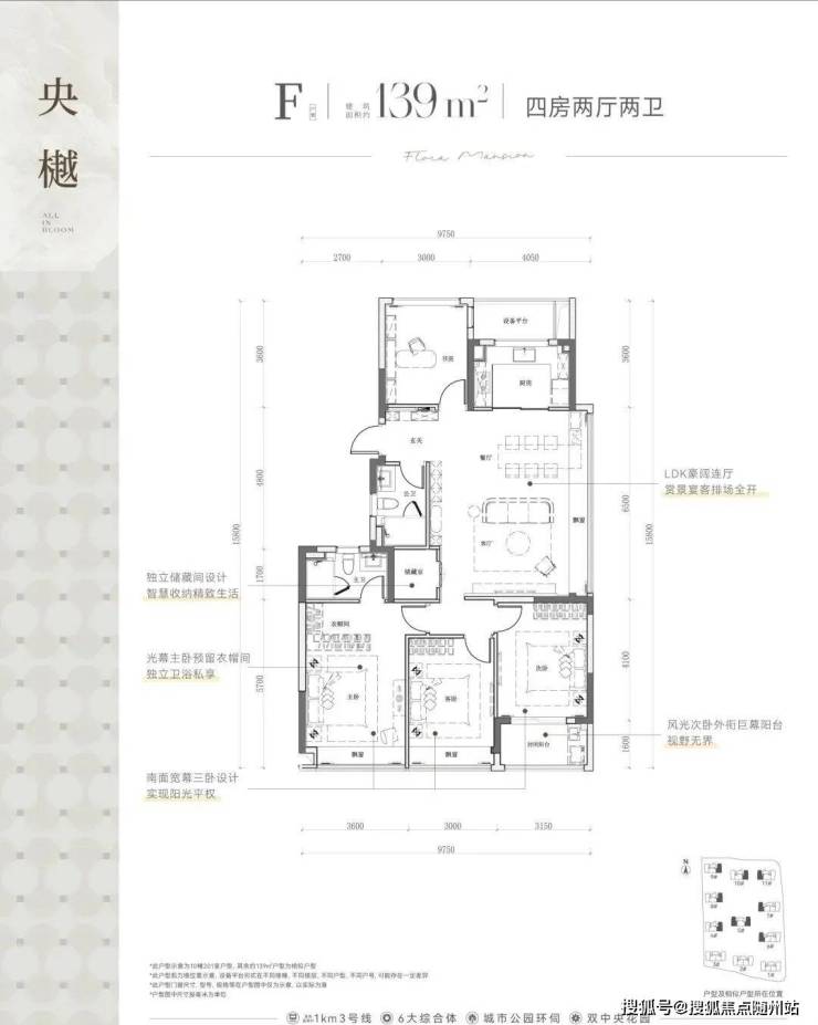 建面约139㎡的四房两厅两卫户型,则以它的南向三卧室:双飘窗+封闭阳台设计脱颖而出。整体南北通透设计,加上主卧衣帽间的贴心设置,为家庭生活提供了更多的空间选择和功能性需求。