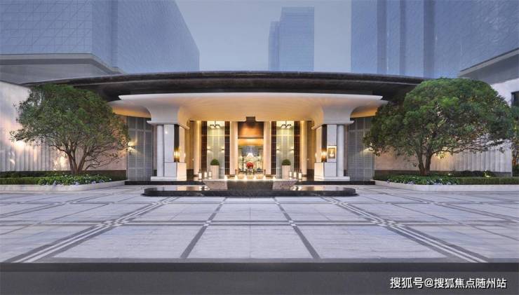 高层公建化立面勾勒极简美学,大面积开窗纳湖光入室,层叠线条随光影起伏,似湖波律动,如油画框般定格风景,点缀金镶玉嵌的美感,镌刻出海派风尚的大湖流金之美。