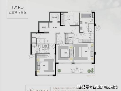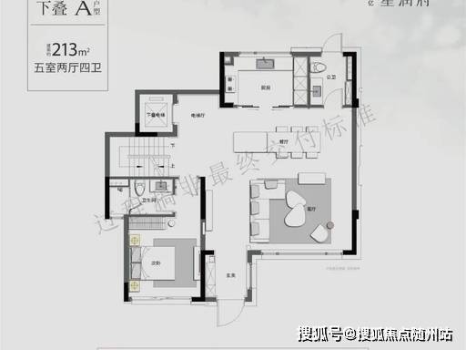 1. 下叠(约 213㎡,5 室 2 厅 4 卫)