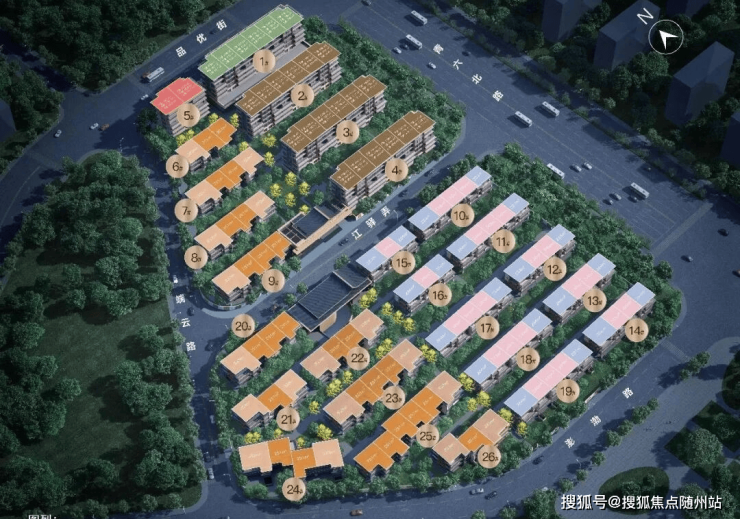 于约1.1容积率的低密基因,遵循“南低北高、西低东高”建筑规划,创造性地采用“以湖为心、扇形铺展”的排布形式,规划3层合院、4层排屋、6层叠墅,并以“L型半围合”排布,将5幢6层叠墅沿城市道路布局,湖景资源最大化,打造「临湖而居,景城共生」的高端居住范式。