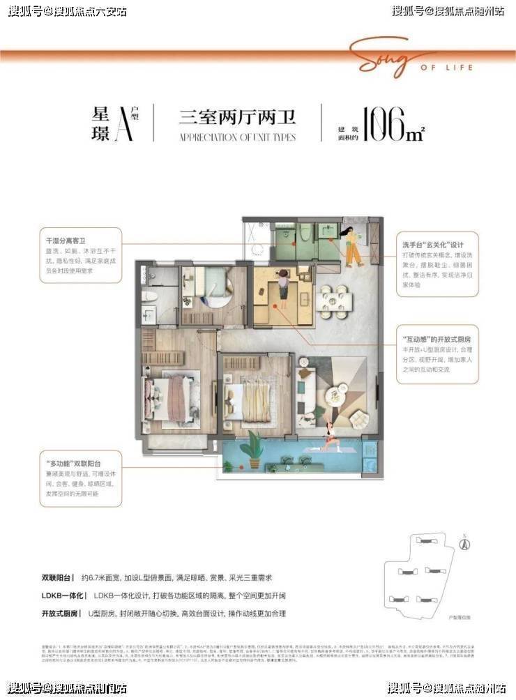 在户型设计方面则展现了“效率美学”:建面约106㎡户型实现约6.7米南向双联阳台,采用LDKB一体化设计,获得超越面积的空间感;建面约133㎡户型独创“800库”玄关系统,将露营装备、运动器械等大件物品收纳难题优雅化解。