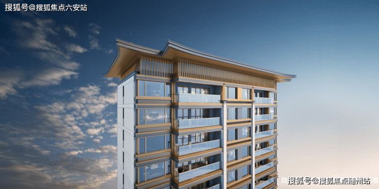 飞鸟屋脊挑檐的高层也自成其景,四面大面铝板+大面宽玻璃,以金线勾边,极具辨识度,如高台楼阁静立园中,进一步升华了宸云的中式禅境。