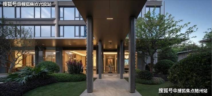 棠悦芳华轩大门实景:萃取东方礼制精髓,沿东西向主轴设置多重归家院落,形成主入口至迎宾水院及度假水池为一体的礼序归家轴。层层递进的空间,在步移景异中,营造出多重归家仪式。