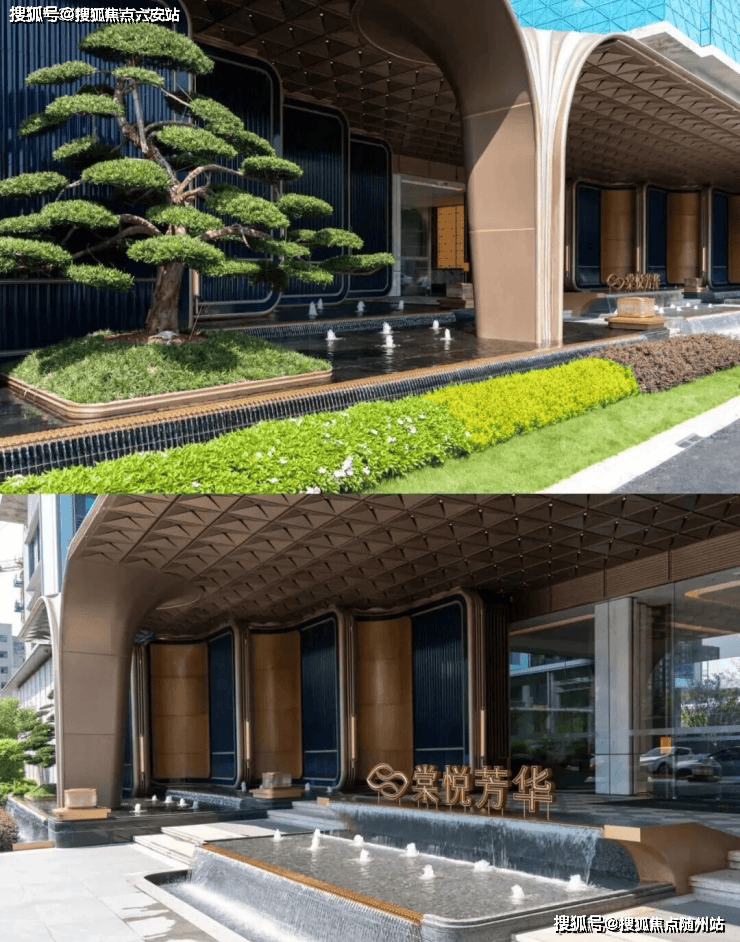 站在棠悦芳华轩的社区大门前,你第一眼就能感受到强大的归家气场。通过精细拉槽的石材与仿铜不锈钢的巧妙组合,加上世界名表伯爵旗舰店同款宝石蓝釉面陶板、灵动曲面的造型……刷新板块的认知。