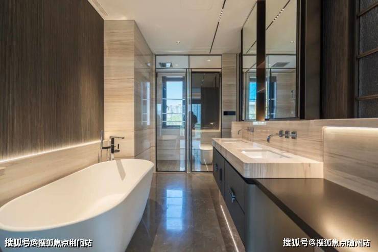 约43平的豪华主卧,顶别人家3个房间的大小,将衣帽区、卫生间、卧室做“三分区”独立设计,极致的享受、私密性拉满。如此阔绰的空间使用和布局,小胖之前多在别墅户型里见到。