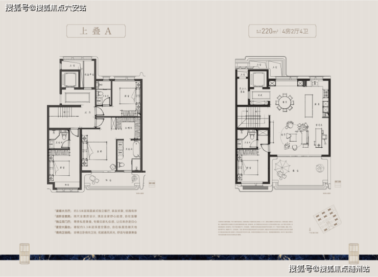 全套房设计,提升居住舒适度。上下叠各有ABC三种户型,面积在212-280平之间,且所有户型为全套房设计,主卧更是可实现“小家化”布局,家庭成员各有一方私密天地,享受更加舒适、静谧的墅居生活体验。
