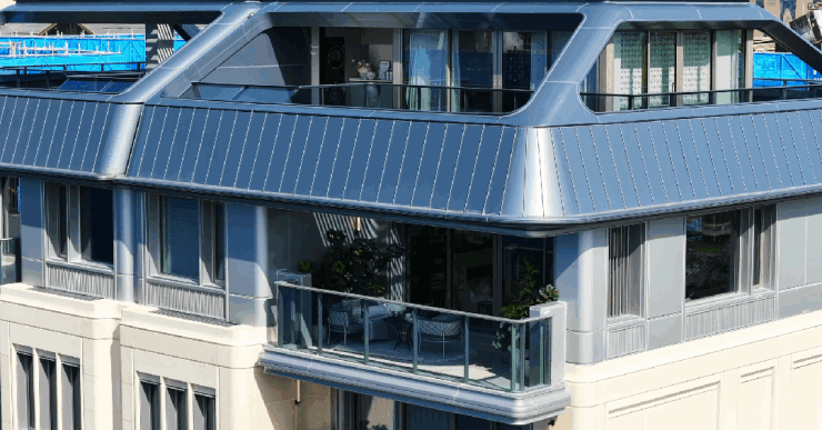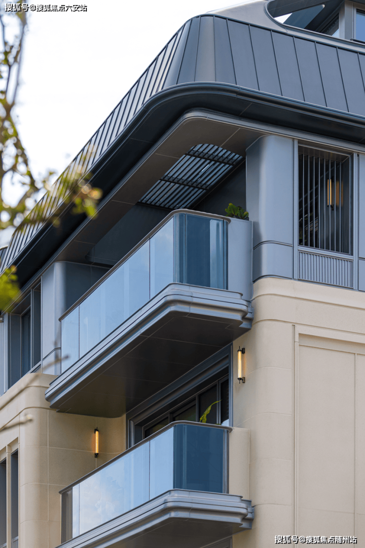 建筑立面选用欧洲莱姆石基座与景泰蓝奢石线条,融合新艺术曲线与摩登海派元素,打破豪宅同质化。