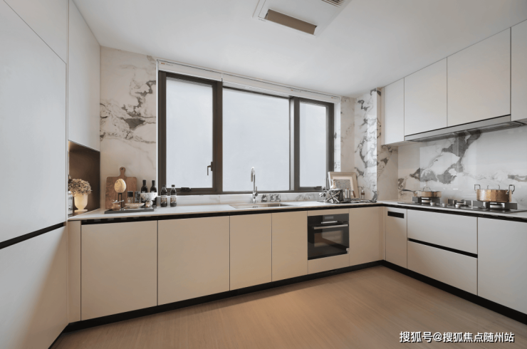 厨房打造超长台面,搭配抽拉龙头、灶边伸缩水管与一线品牌五件套,精准解决台面拥挤、加水端锅不便、设备缺失三大痛点,让烹饪不再是繁琐的负担,而是从容享受的过程;无论是日常三餐的简单烹制,还是亲友小聚的美食盛宴,都能轻松应对。