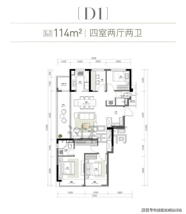 · 南向总面宽预计达约11.5米,尺度堪比很多110方以上户型