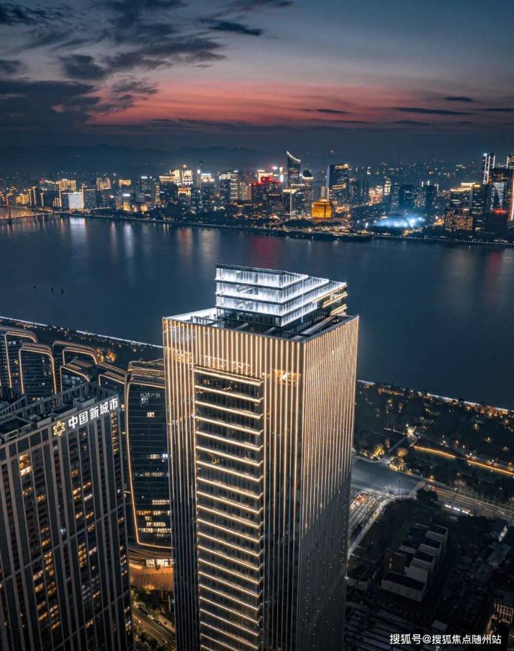 由香港RLP设计公司执笔,以“天幕瞰江”为理念,打造杭州唯一240米摩天双塔地标。4.2米层高、270°环幕视野,搭配全落地窗设计,将钱塘江景、奥体灯光秀与城市天际线尽收眼底,重新定义了杭州的“空中艺术馆”。