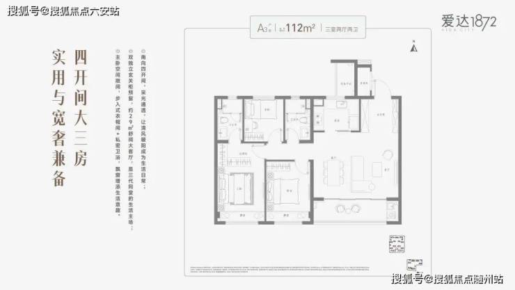 招商蛇口·爱达1872建筑面积约112㎡三室两厅两卫,以科学合理的规划笔触构筑一所“会生长的房子”,匹配家庭的每一个成长阶段。奢阔四开间,让舒适遍布于生活的每一寸肌理之间。