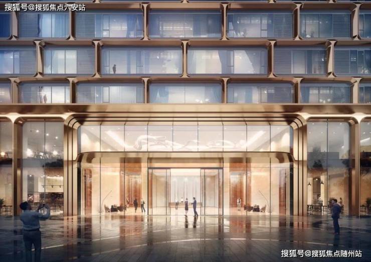 钱潮湾的建筑设计以“钱塘江潮涌”为灵感源泉,由line+建筑事务所操刀,将自然元素的动态美转化为建筑语言。外立面采用金色铝板曲面线条与大尺度玻璃幕墙相结合,形成如潮水般层层推进的流动韵律。竖向线条密度自下而上逐渐疏朗,对应基座稳重与高区通透的建筑逻辑,既体现了力学美感,又契合了不同楼层的功能需求。