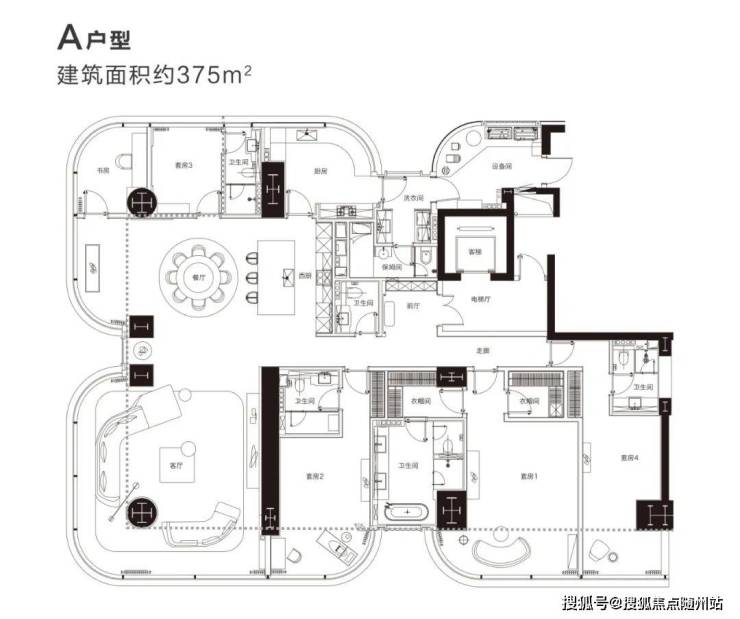 🛑375方大平层,4+2房户型合理🌈建面约375㎡+赠送100㎡ 93%得房率
