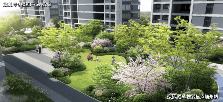 园区绿化率高达35%,打造“一轴一环三院九境”的景观体系。项目规划了约2700㎡阳光草坪、630米环形跑道以及多功能架空层,覆盖全龄活动需求。园林设计借鉴鹿山书院的历史文化风情,并定制独具个性的鹿元素,作为社区景观的构成要素,打造一座融入城市文化肌理的人文生态住区。