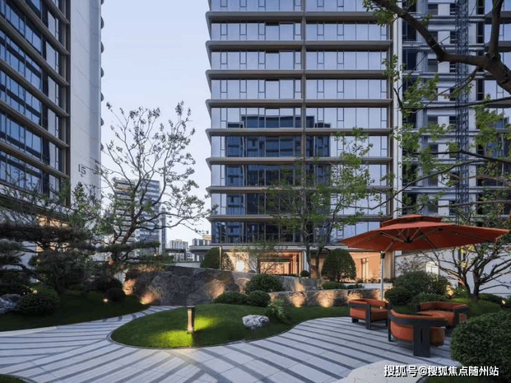 踏入全新示范区实景的那一刻,就被眼前草坡与虎皮黄石材的搭配所吸引,草坡如同自然岛屿,地砖则犹如流动的水流,这种虚实相生的设计,共同打造出了一片别致的枯山水景致。
