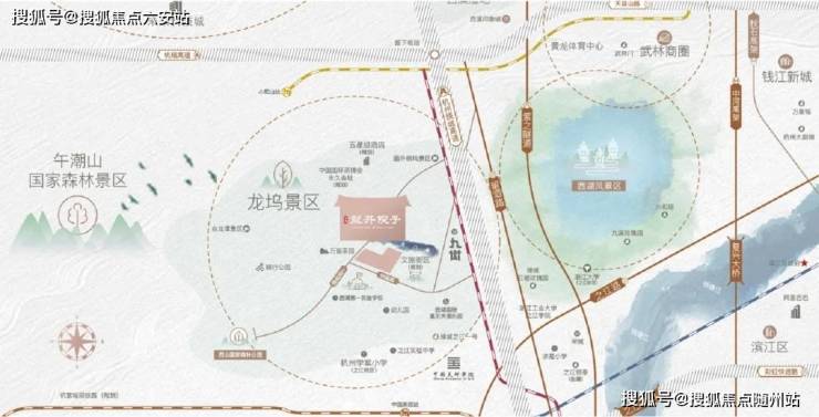项目占据西湖龙井70%产量的核心产区,紧邻14000亩连绵茶园,负氧离子浓度常年维持在6000个/cm³,形成天然氧吧。其区位兼具"双景区"价值:北靠午潮山国家森林公园,南接三江汇流,东距西湖景区仅15分钟车程,西临在建地铁12号线龙坞站(200米),未来20分钟直达未来科技城与滨江,实现"出则繁华,入则宁静"的双城生活模式。