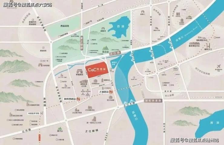 位置:位于杭州西湖区之江新城之浦路与之江路交汇处,宋城旁,九溪玫瑰园正南面,直面一线钱塘江景,背靠西湖群山