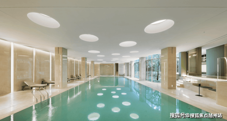 T-ONE潮博就是引领着中国商业平层的行业标准的艺术会所,上升到3.0阶段,做到了约2900m²东西区双会所。因为项目很大共416户,想着不能让东区的业主走几百米到西区去游泳,因此东区损失了可售面积,在1号楼一楼设置了天光泳池,透过落地玻璃看景观,双会所双恒温泳池。泳池能做在一楼的也屈指可数。
