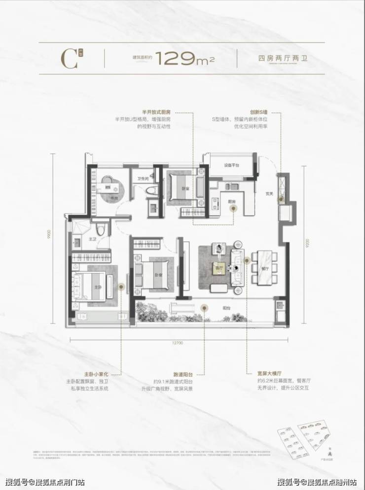 LDKB一体化设计,无界家庭公区;双阳台+270°环幕边厅,采光可谓惊艳;S墙创新设计,实现内嵌式收纳;半开放式厨房,可开合移门+互动岛台,中西厨随意切换。