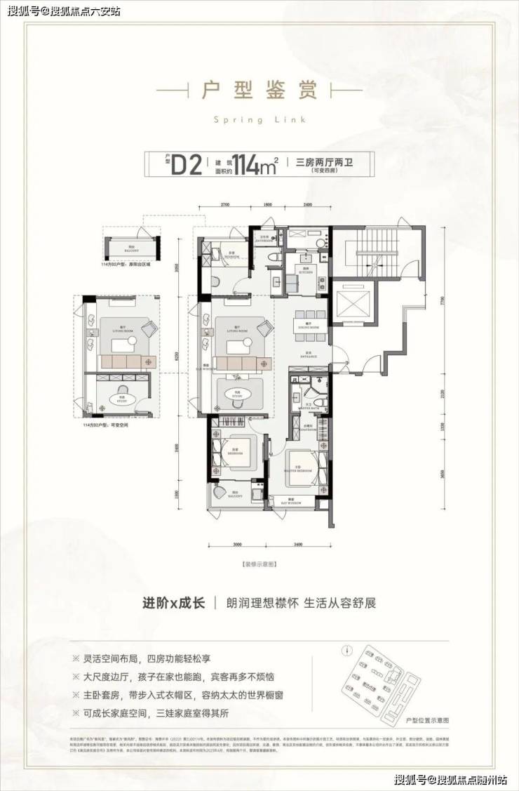 建面约114㎡户型带有约6.3米宽客厅,开放式书房也可作为房间,轻松转变成“3+1房”,即便三代同堂,居住也是毫无压力。在户型设计上,项目充分考虑到了当代青年的生活需求。