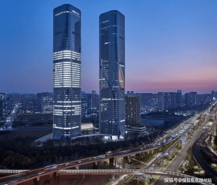 双塔以钱塘江潮为灵感,流线型玻璃幕墙如江水奔涌凝结成门,61层天际线勾勒出「数字浪潮」的当代隐喻。双塔底部环绕3000㎡中央绿谷,通过立体退台设计打造「空中绿洲」,让商务与自然在垂直维度共生。夜幕降临时,塔顶智能灯光系统上演「潮汐幻影秀」,以光为笔书写杭城新地标的艺术宣言。