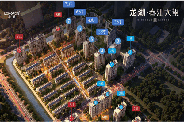 春江天玺是龙湖在滨江南打造的全新生态智慧型居住社区。我们项目东起万顺路,西至贤浦路,南依聚萃路,北靠汇二路。整个项目占地面积约 9.2 万方,建筑总面积约 28.3 万方,总户数1879户,绿化率35%,容积率1.6,车位配比1:1.1,项目分为南北2个地块,有小高层和叠加两种业态。