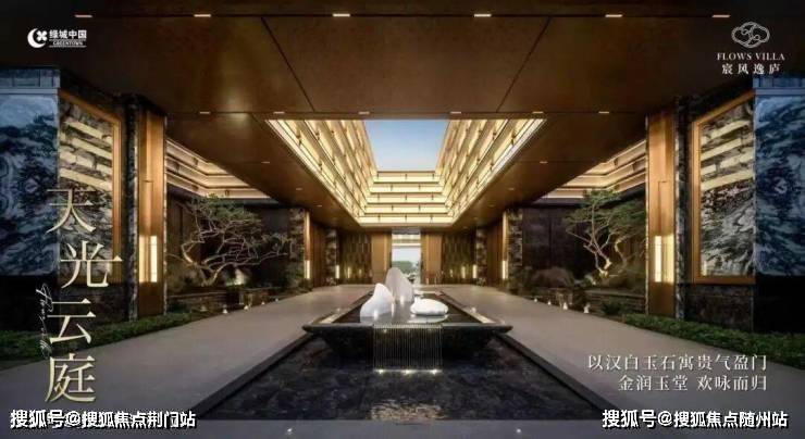 门庭之中,别有洞天。五块汉白玉镇石立于庭前,呼应「五福临门」;顶部「四水归堂」的天井设计,整个入口如同一座「聚宝盆」。