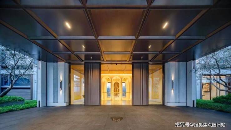 在东方雅奢的理念下,沄璟就呈现出东情西韵的殿堂级气场。你看,人行入口处,以非遗杭扇为肌理,转译成项目特有的东方归家礼序,像一道玉璧屏风,将喧嚣与嘈杂挡在身后。
