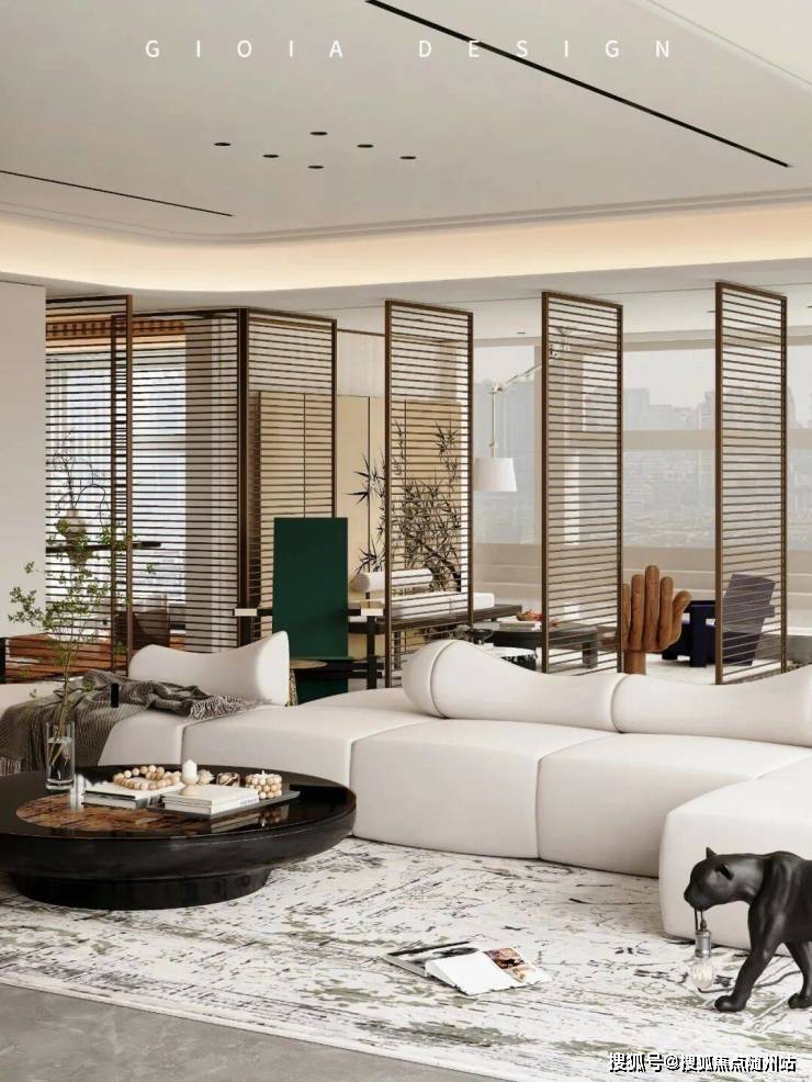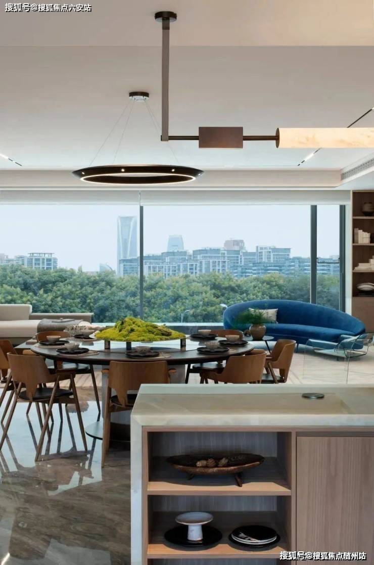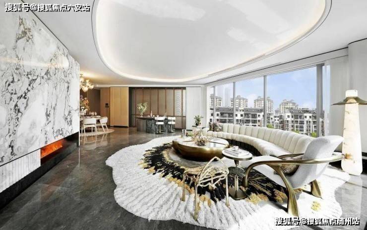 将艺术感进一步融入日常中。特别设计的专属门厅空间,是从电梯厅延伸到家,如同一处艺廊,放慢人的情绪;室内选用了浅金色奢石(外界也称其为“芬迪白大理石”)作为主要的石材,曲面的木饰面也为浅色,整体给人以明亮感。