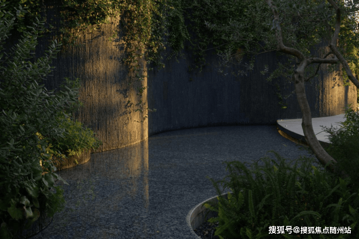 走入T-ONE潮博西区的园区,可以看到一条蜿蜒的水系串联着不同场景,贯穿整个楼盘。在这里,Pok是结合了杭州「钱塘江潮」的在地文化,用溪流与叠水打造出了一座很有度假感的花园。花园中,凡是有户外座椅的地方,就会有微风、树荫与水流的环绕。