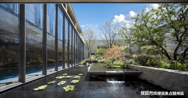 其中“点睛之笔”落在云崖悬厅,是以世界知名建筑“流水别墅”的美学为设计内核,8级落瀑从高处倾泻而下,水声潺潺间与下沉式景观相融。