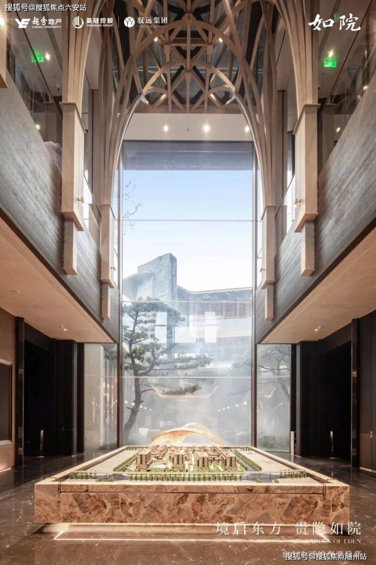 它是杭州实施建筑新规后,第一个亮相的采用抬板设计的纯低密项目。借助抬板设计,如玺华院形成了整体高差约15米的三层立体空间格局,“下沉式庭院+檐下游廊+亭台楼阁”层叠交错,让西湖郭庄的“一池三园”架构,在如玺华院的场域里“站立”了起来。它也是杭州第一个将陶板材质运用于立面的纯低密项目,建筑立面上用每一片都需20余道工艺方能成型的天青色陶板点缀,致敬杭州宋韵文化,演绎“雨过天青云破处”的意境。