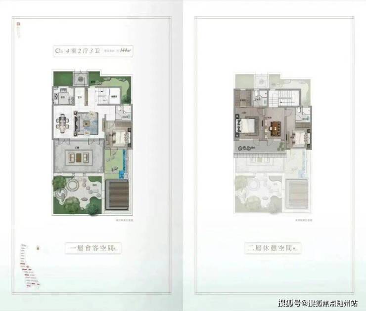二期合院随坡赋形疏朗趴伏,户型建面约129—370㎡,主力户型则有约136㎡、144㎡两种。